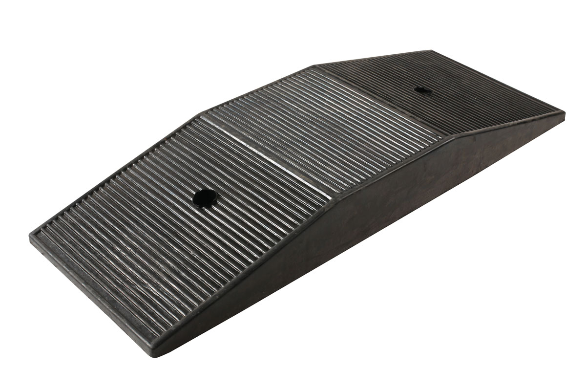 - Schuin aan twee zijden voor gemakkelijke toegang en geschikt voor lage voertuigen, inclusief raceauto's en auto's met verlaagde ophanging om te helpen bij het opkrikken.