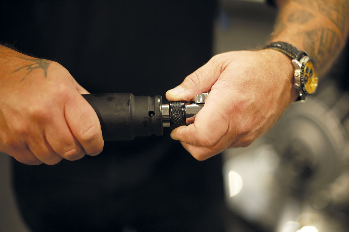 - Die Sicherheitsverriegelung verhindert, dass sich der Steckschlüsseleinsatz löst, was Schäden oder Verletzungen verursachen kann (max. zulässiges Drehmoment 1200 Nm).