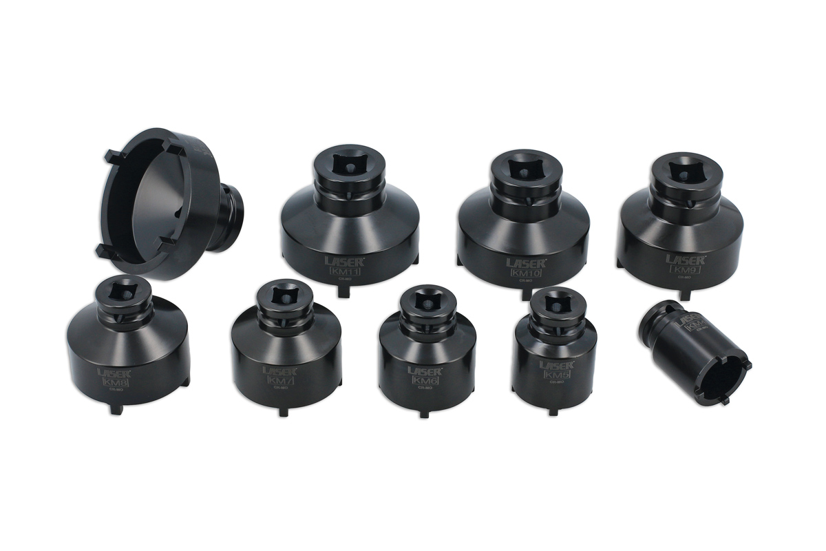 - KM-Steckschlüsseleinsätze (innen) finden Sie unter Laser Teile-Nr. 8913. HINWEIS: Nicht mit Schlagschraubern verwenden.