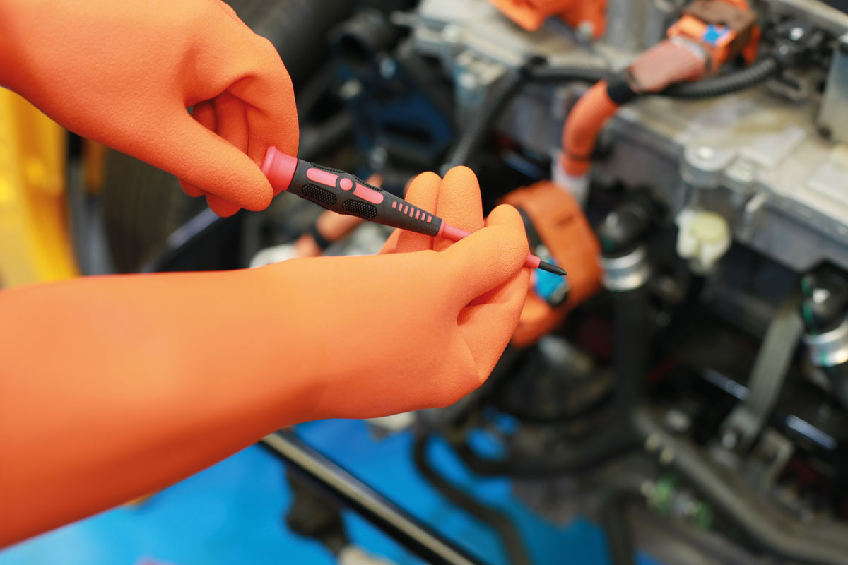 Diese extrem dünnen Isolierhandschuhe mit einzigartiger, rutschfester Textur ermöglichen mehr Beweglichkeit als herkömmliche Isolierhandschuhe und garantieren beste Griffigkeit, selbst bei der Handhabung kleinster Komponenten. „Touch-E“-Handschuhe sind aus Naturkautschuk, der hervorragende dielektrische Eigenschaften aufweist. Dank der chlorierten Oberfläche sind sie leicht zu tragen; ihre ergonomische Form wurde so konzipiert, dass sie sich perfekt an die Hand anschmiegen und einzigartige Beweglichkeit garantieren.