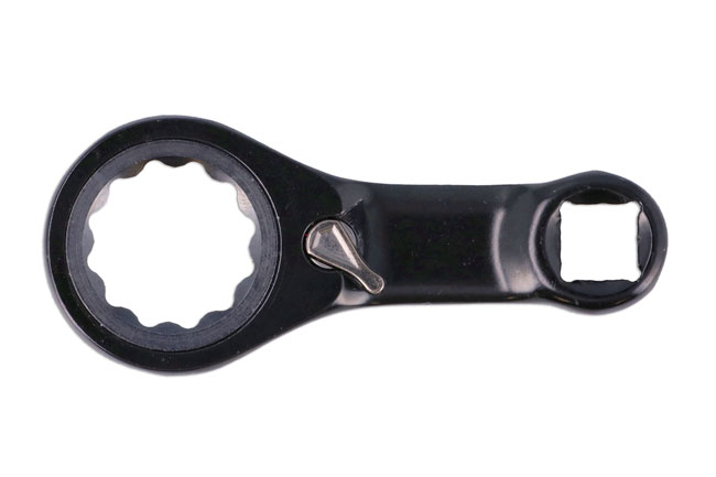 - 3/8"D x Bi-Hex-profiel (12pt). Omkeerbaar ratelmechanisme met 120 tanden.