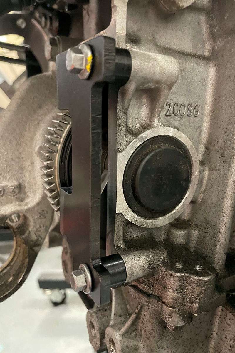 Designed to bolt in place of the engine side cover and align the balance shaft on the EB2 range of 1.2L petrol engines, used across the Stellantis/PSA brands.