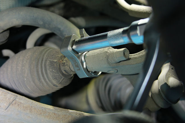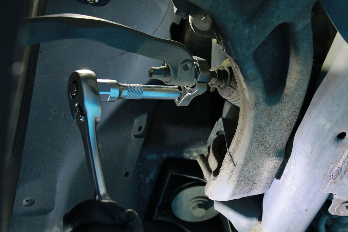 Satz mit fünf Hahnenfußschlüsseln in den Größen 22, 24, 27, 30 und 32 mm, geeignet für die Verwendung an Spurstangenenden, großen Sechskantrohr- und Leitungsverschraubungen, Hydraulikkolben und verkabelten Sensoren. Für die Verwendung mit einer Verlängerung mit 1/2"-Antrieb, mit federbelastetem Schnellverschluss, mit dem sie offen bleiben können, wenn sie um das Befestigungselement herum angesetzt werden, sowie mit Ratschenfunktion, die sie ideal für den Einsatz in beengten Bereichen macht.