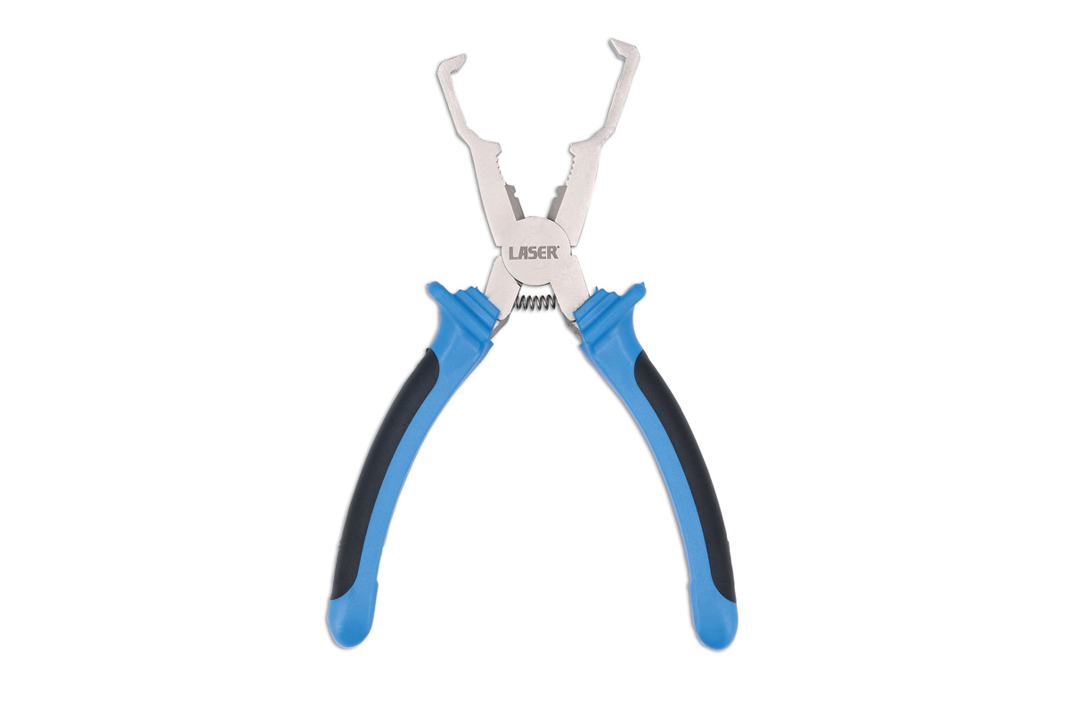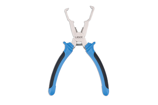 Specially designed electrical disconnect pliers with an offset jaw which allows the connector lock to be released prior to pulling the connector.