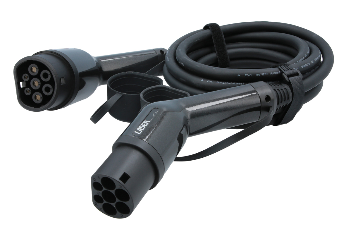 - 5m long BEV/PHEV charging cable, with Type 2 vehicle plug (female) to Type 2 charger plug (male), complete with carry bag.