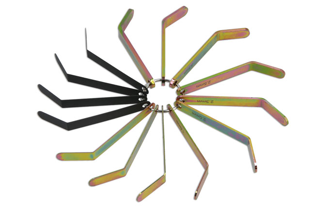 A 14-piece HGV exhaust brake adjustment gauge, also known as "Jake Brake" gauges, used to adjust the engine braking system cam clearance as required by OEM.