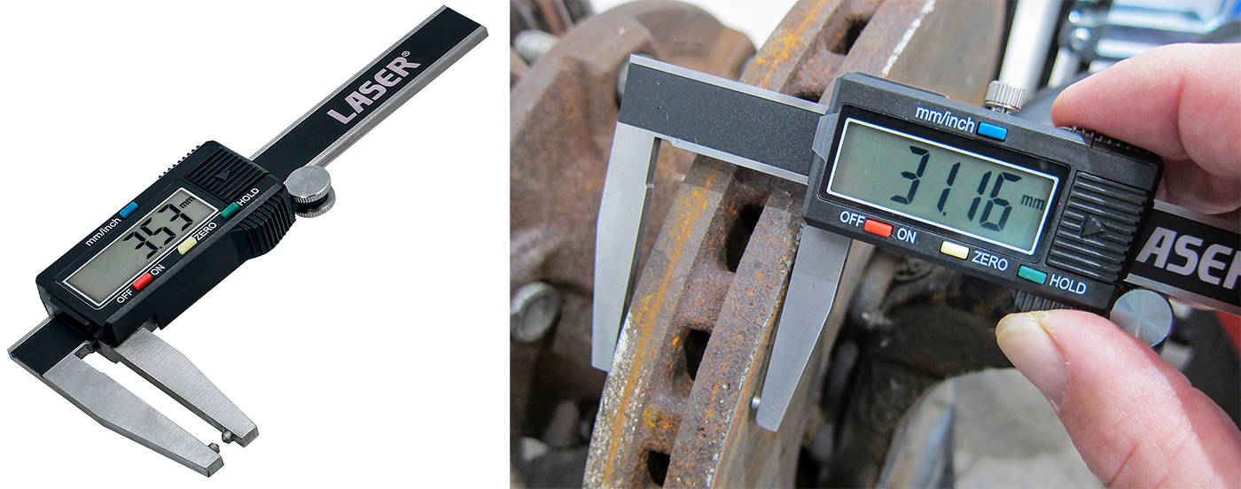 - Digital caliper for brake disc thickness checks – designed to measure from the actual braking surface, not the wear lip.