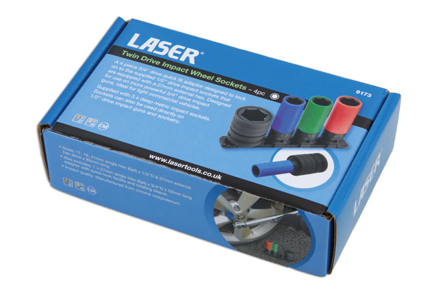 New from Laser Tools: 4‑piece twin‑drive impact wheel-socket set