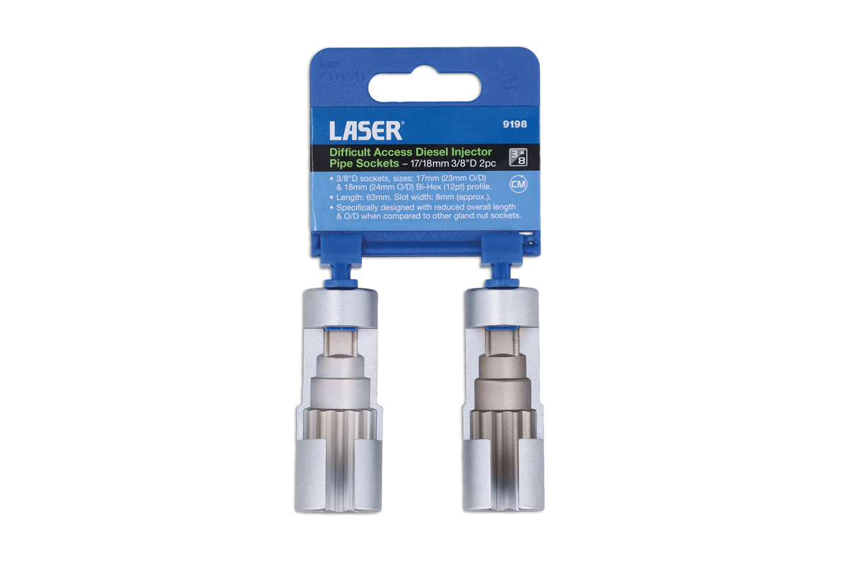 9198 Difficult Access Diesel Injector Pipe Sockets 17/18mm 3/8"D 2pc