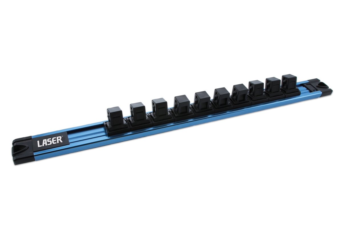 • Steckschlüsseleinsatz-Schienen für Stecknüsse mit 1/4"-Antrieb und 3/8"-Antrieb ebenfalls erhältlich, siehe Laser Teile-Nr. 9235 (1/4"-Antrieb) und 9236 (3/8"-Antrieb).