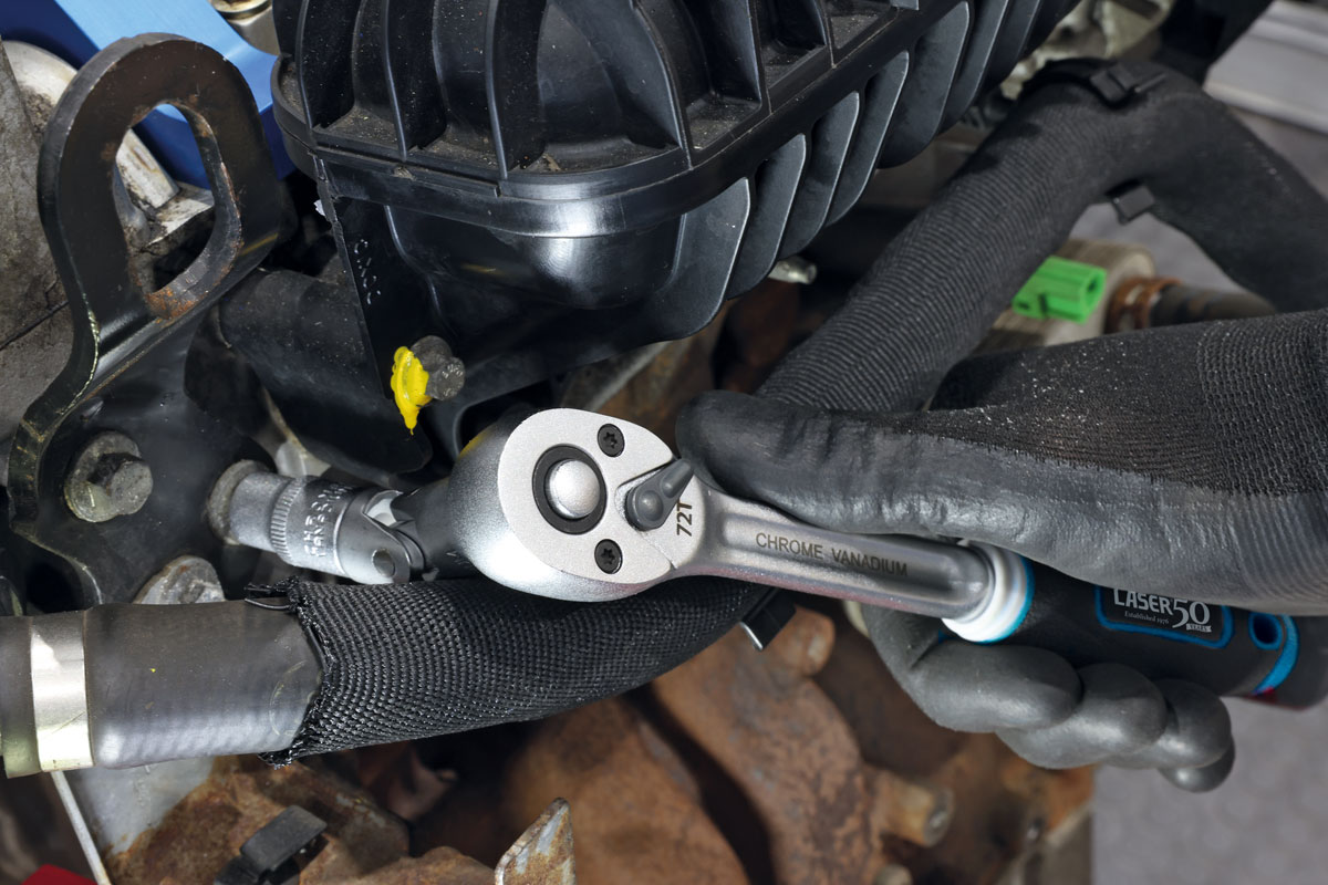 - Eine Ratsche mit 72 Zähnen mit 3/8"-Antrieb mit Hebel-Daumenschalter und komfortablem Griff.